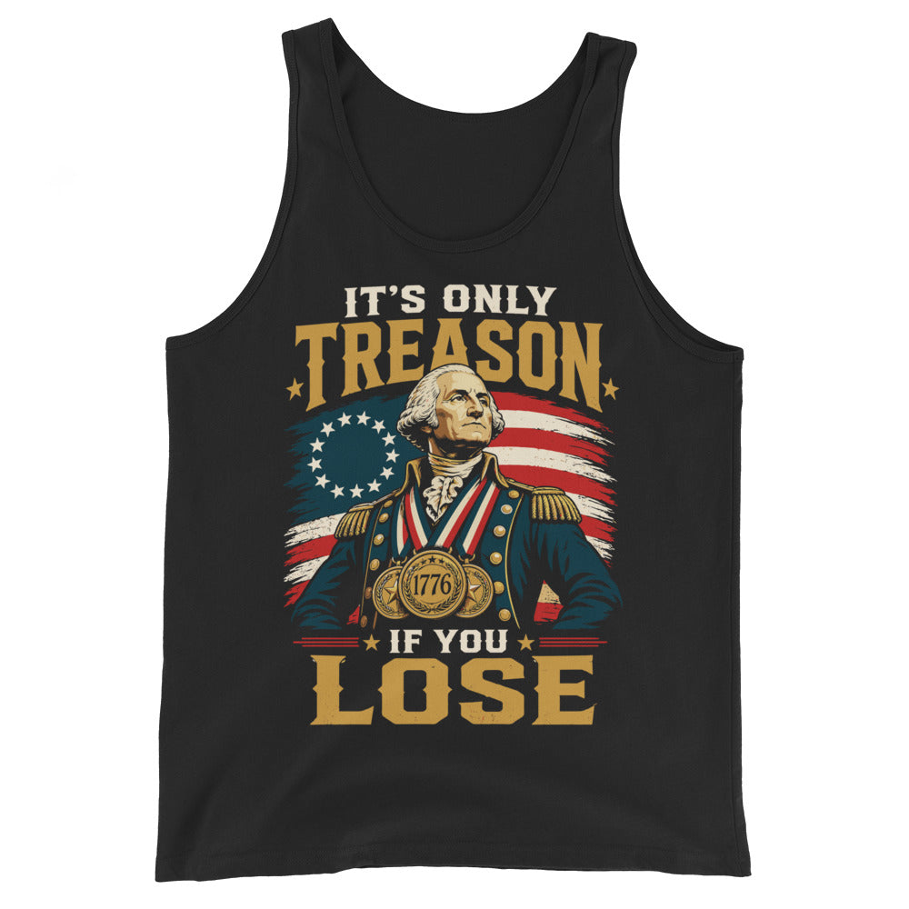 This patriotic tank top features George Washington with a bold 1776 theme and the phrase “It’s Only Treason If You Lose,” delivering a strong message with classic American style. It’s built for those who respect the roots of this country and aren’t afraid to show it.