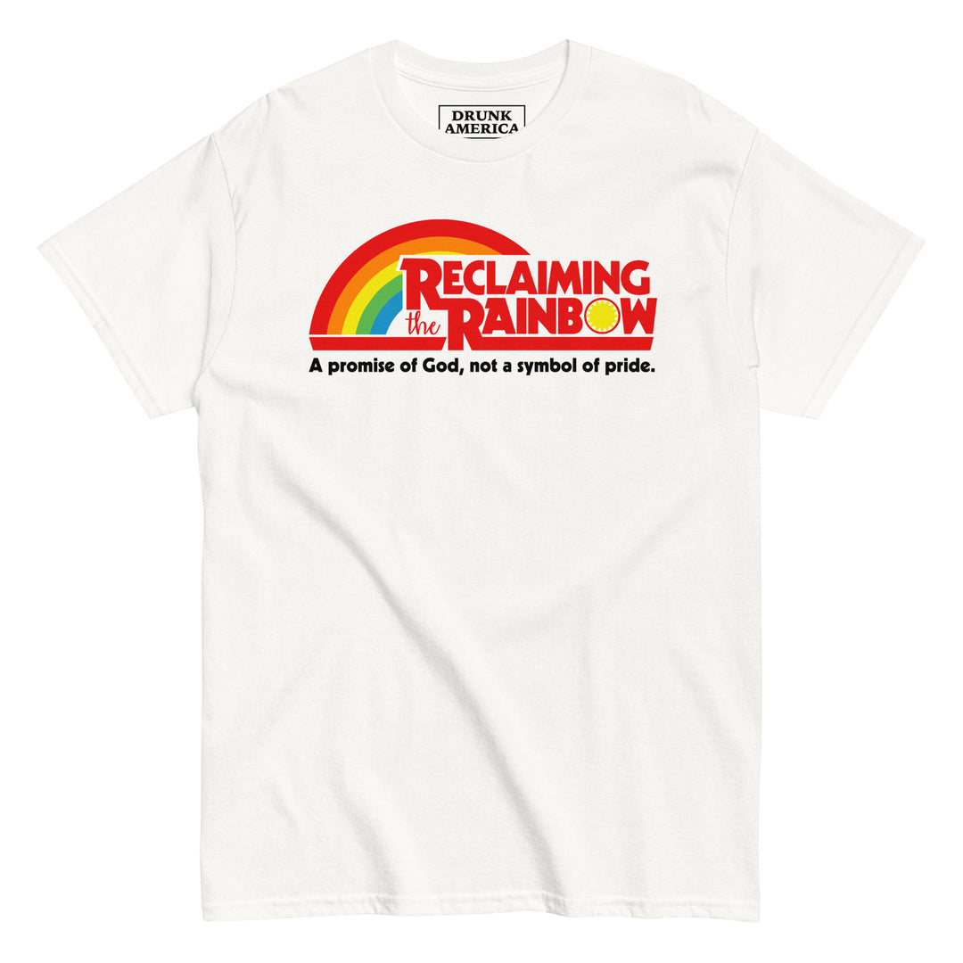 The Reclaiming The Rainbow graphic t shirt delivers a faith based message that reclaims biblical symbolism with clarity and conviction. Featuring a bold rainbow design paired with the phrase Reclaiming the Rainbow, this shirt emphasizes the original Christian meaning rooted in God’s covenant, not modern political movements. The design is clean, readable, and intentionally centered to communicate the message without confusion.