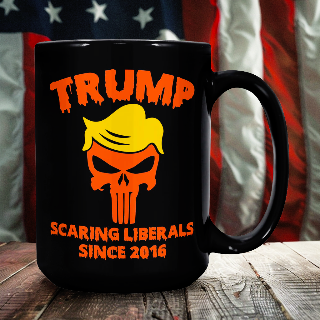 This black “Trump Scaring Liberals Since 2016” mug isn’t just for coffee—it’s a daily reminder that the haunting never stopped. Every sip fuels the spirit of 2016, when the left’s nightmares came to life and the meltdowns began. Bold, unapologetic, and impossible to miss.