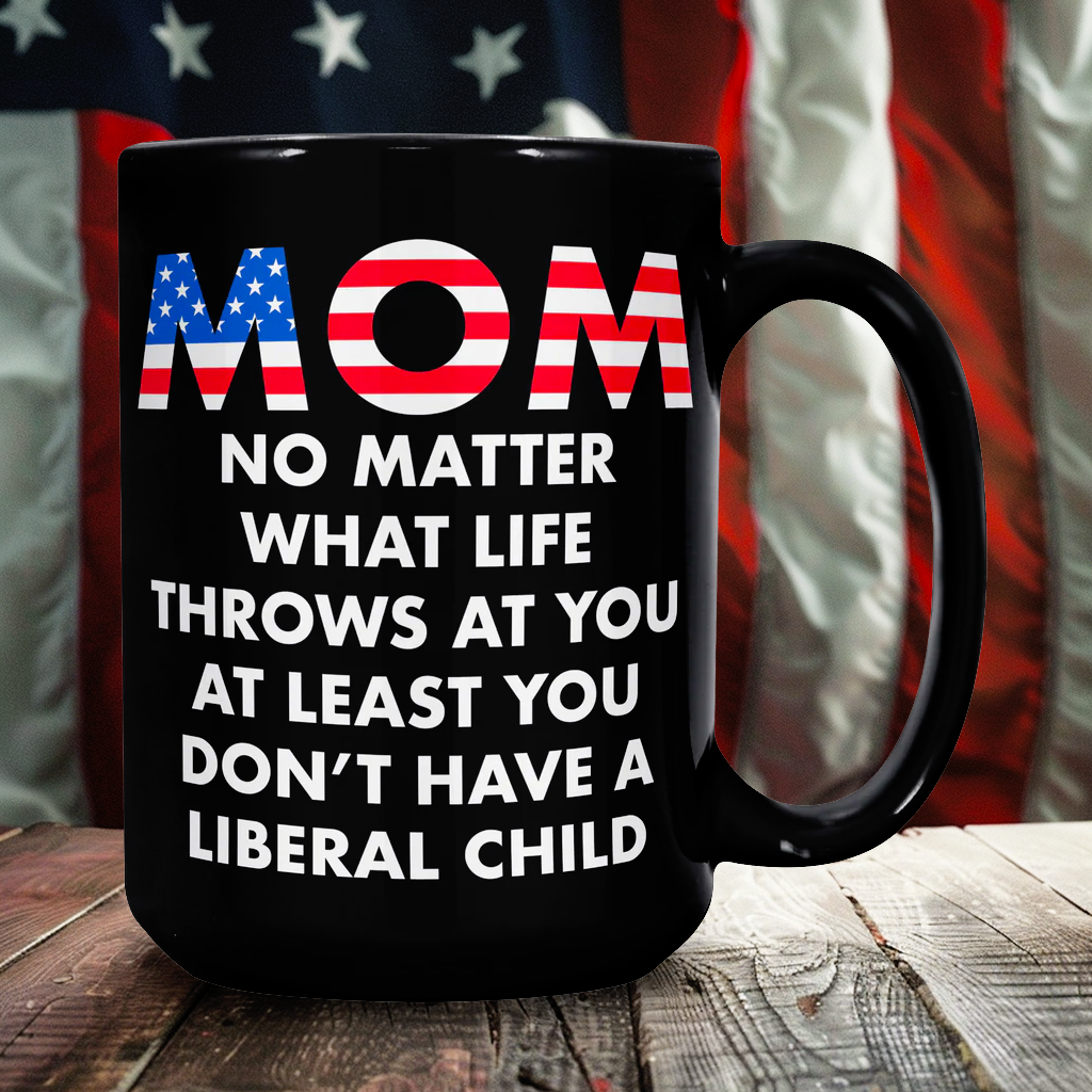 Mom, No Matter What Life Throws At You… At Least You Don’t Have a Liberal Child – Double-Sided Black Coffee Mug