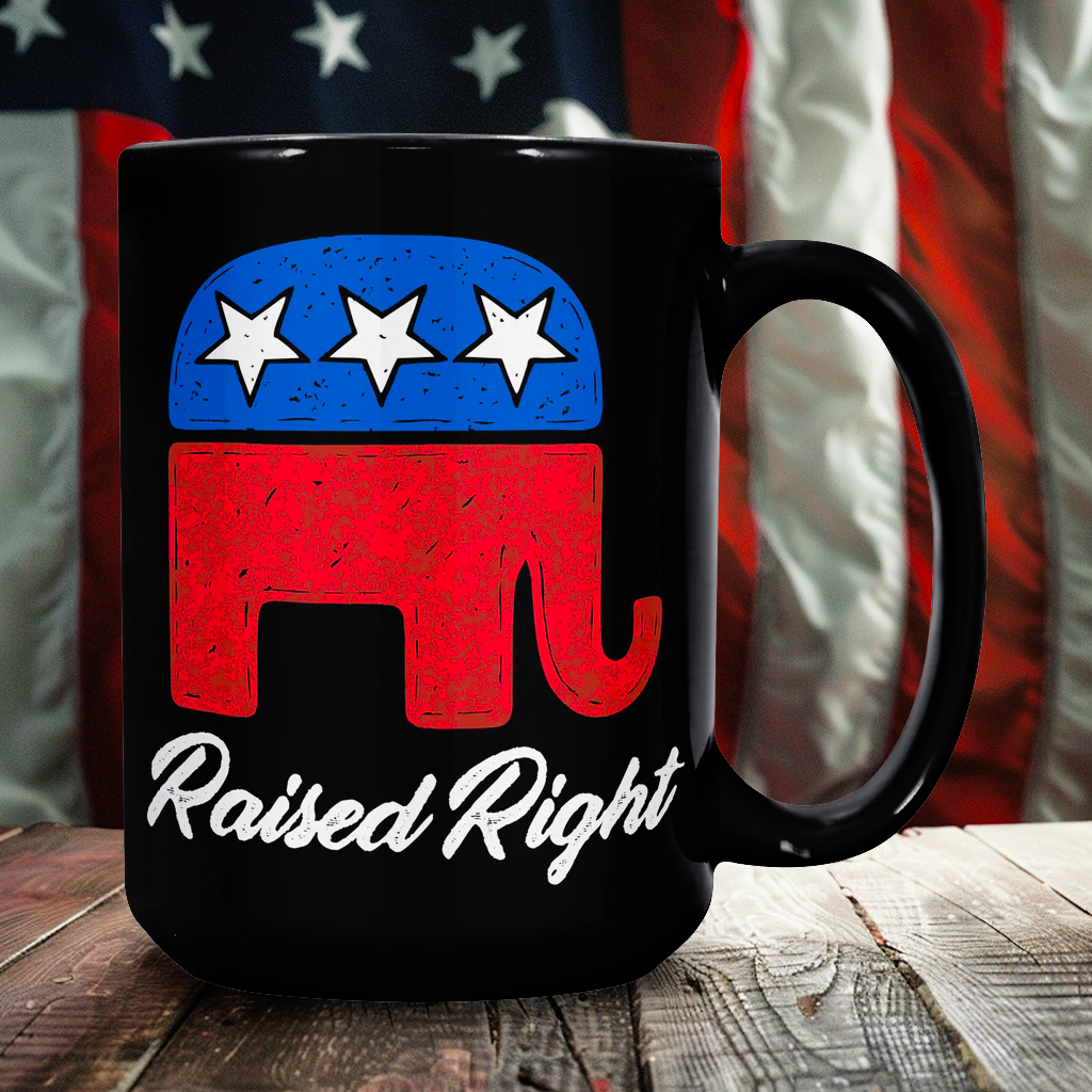 Start your morning like you were Raised Right. This bold black coffee mug features a double-sided design so no matter which way you hold it, your values are front and center. Faith, freedom, and common sense—piping hot and proudly American.