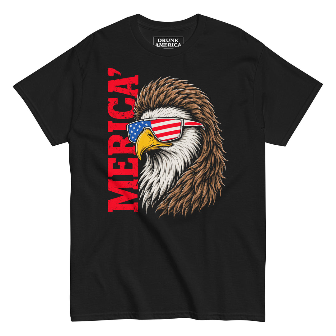 This graphic t shirt brings bold, laid back American attitude with a clean patriotic edge. Featuring a detailed bald eagle rocking American flag sunglasses with vertical “MERICA” text, this design is all about confidence and pride.