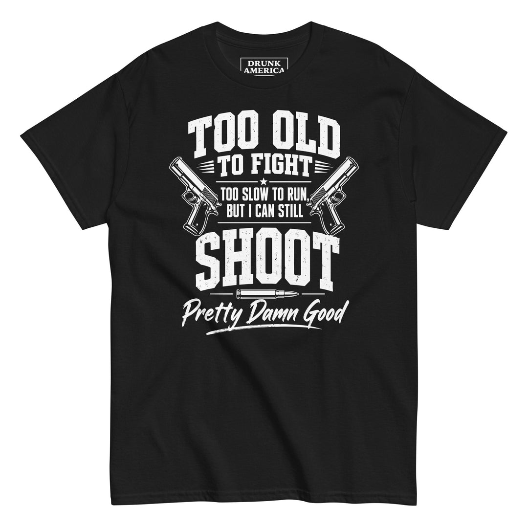 Too Old To Fight Too Old To Run But I Can Still Shoot Funny 2nd Amendment Graphic T-Shirt