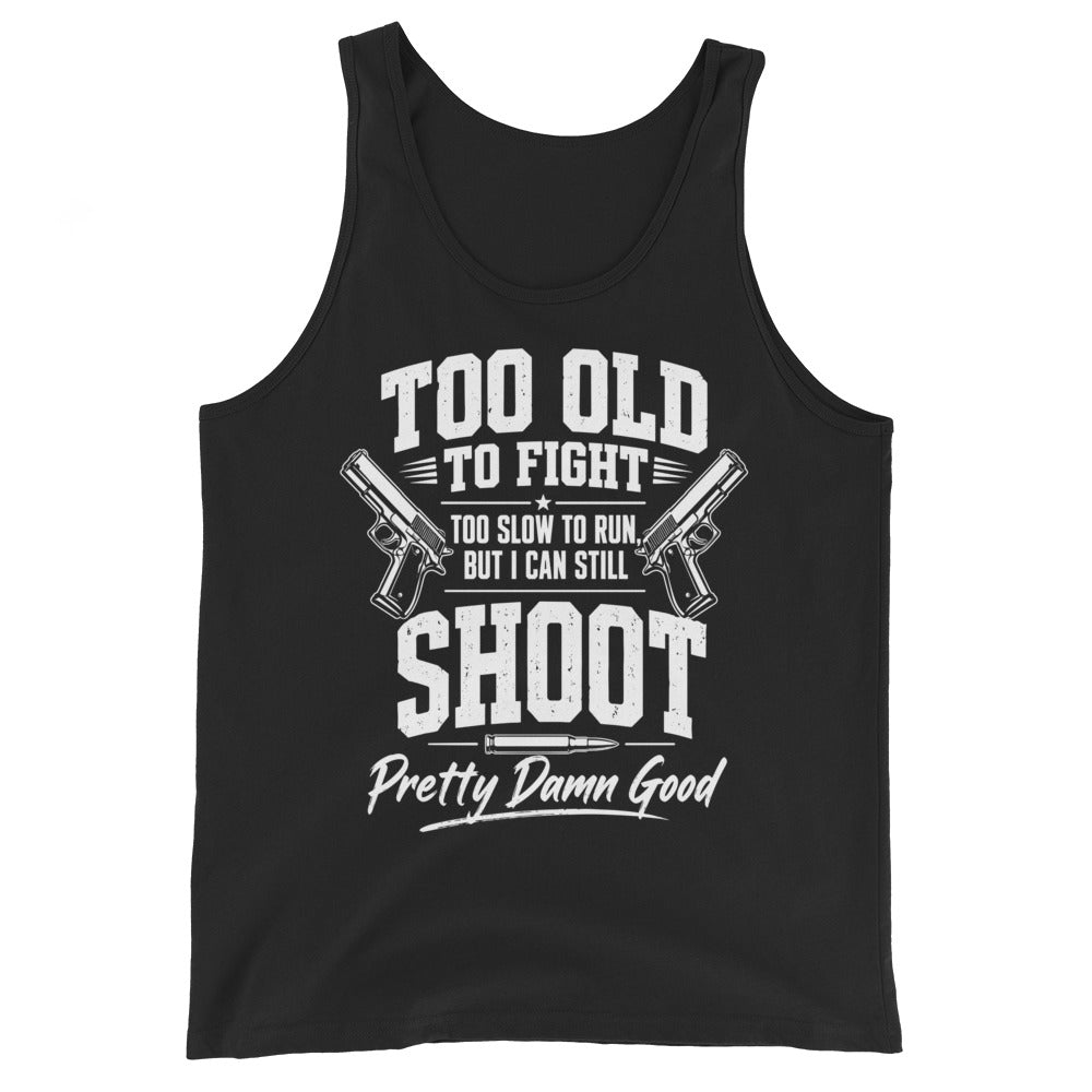 This bold tank top delivers classic humor with a rugged, no nonsense design featuring the phrase “Too Old to Fight, Too Slow to Run, But I Can Still Shoot Pretty Damn Good.” Built for those who know experience beats speed, this design brings attitude and humor together perfectly.