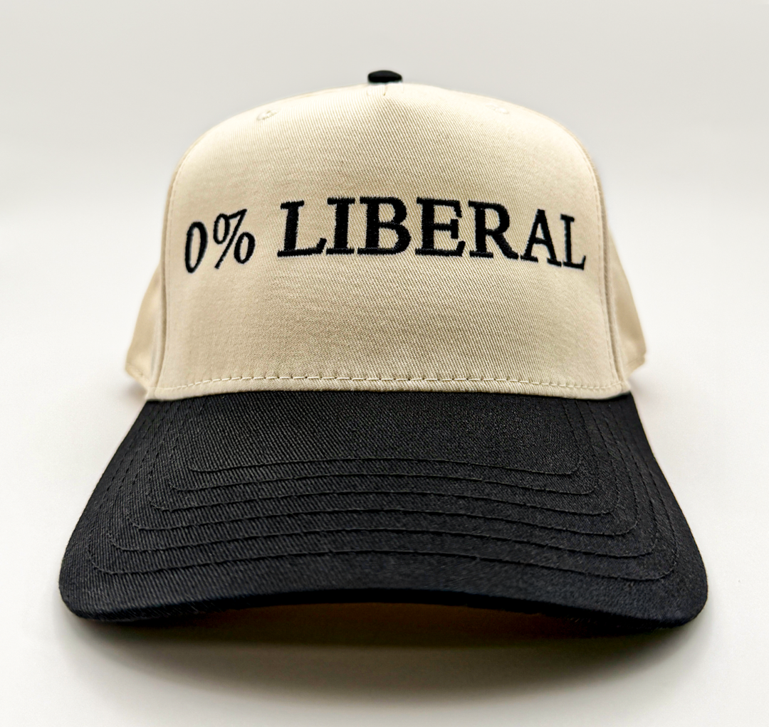 This 0% Liberal structured snapback hat delivers a message that is clear, direct, and unapologetic. It is made for people who are done watering down their beliefs and have no interest in pretending otherwise. The bold front embroidery makes the statement instantly recognizable, while the black bill adds a sharp contrast that gives this hat a serious, no nonsense edge.